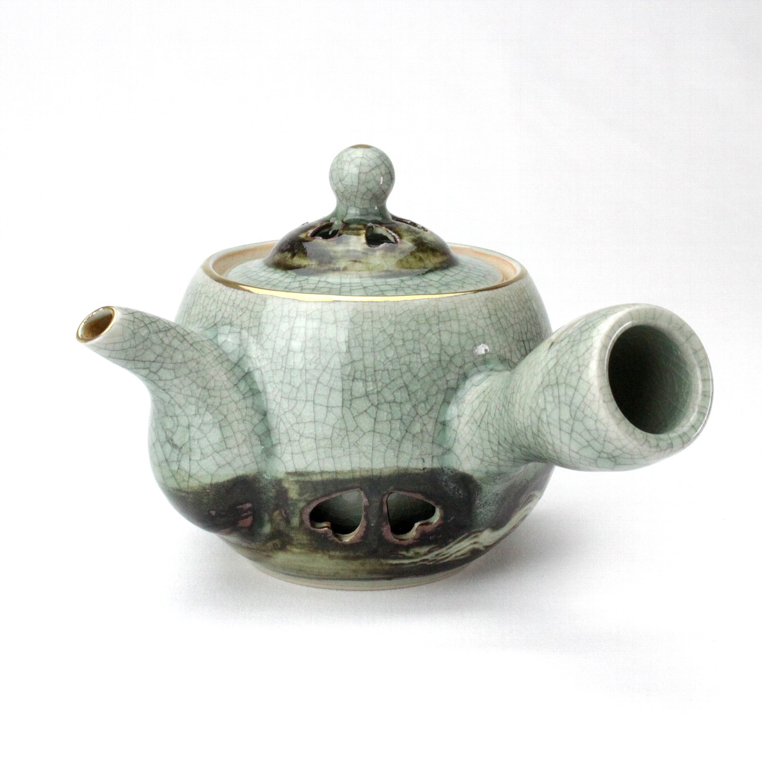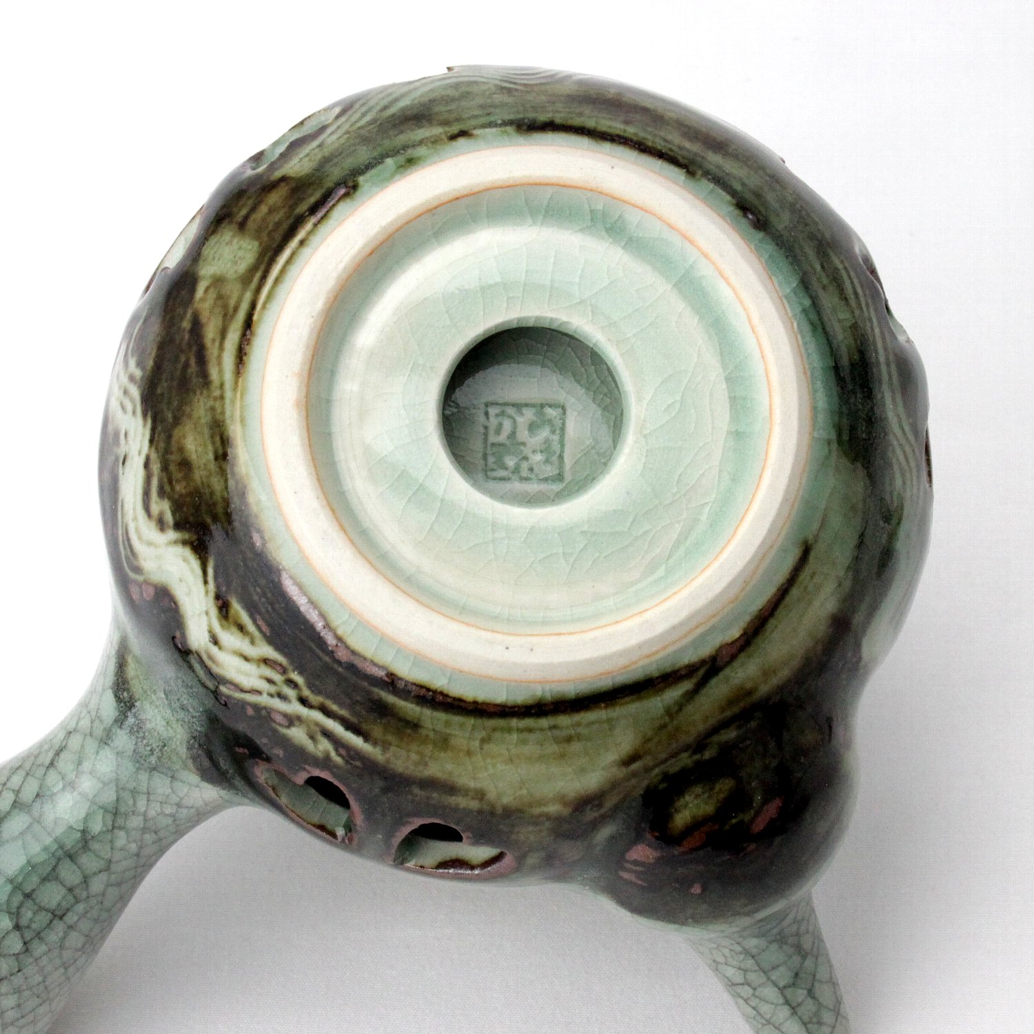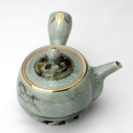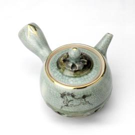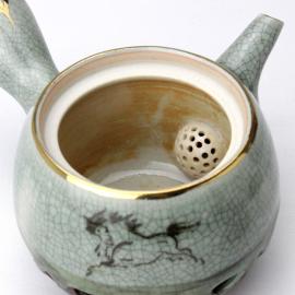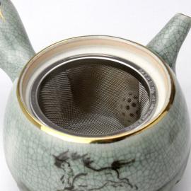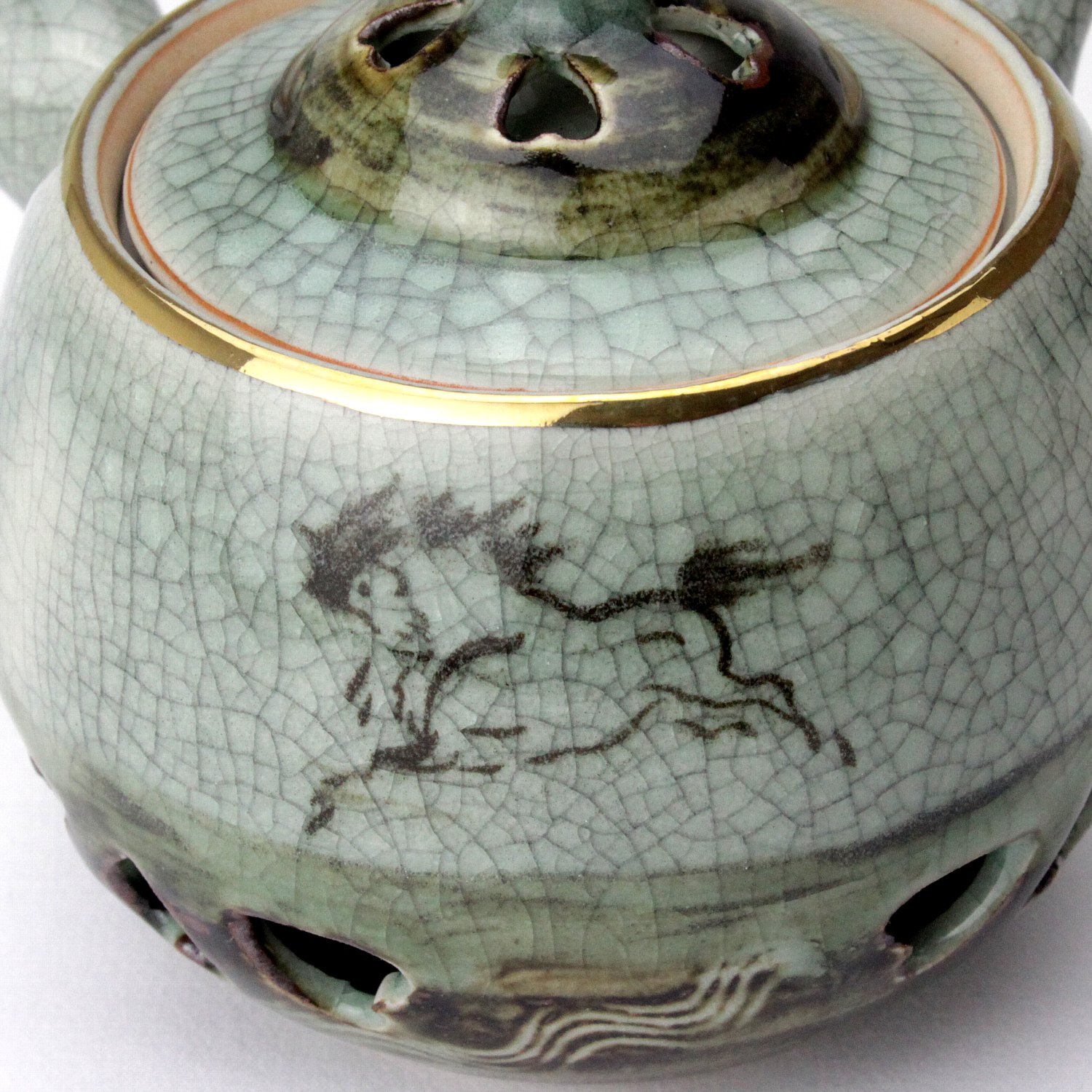 This product is a traditional double-layered kyusu(tea pot), a typical example of the pottery known as Soma-koma-yaki or Soma-yaki.