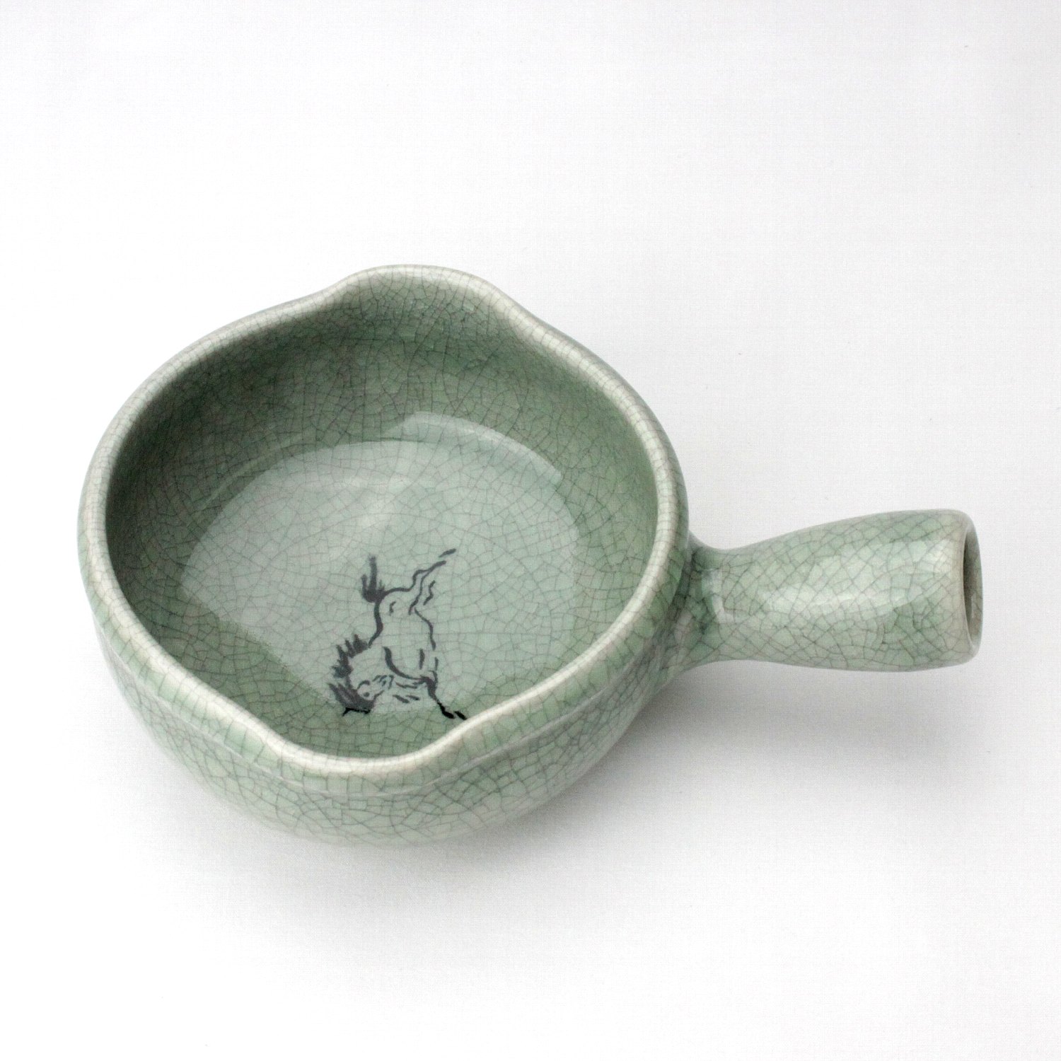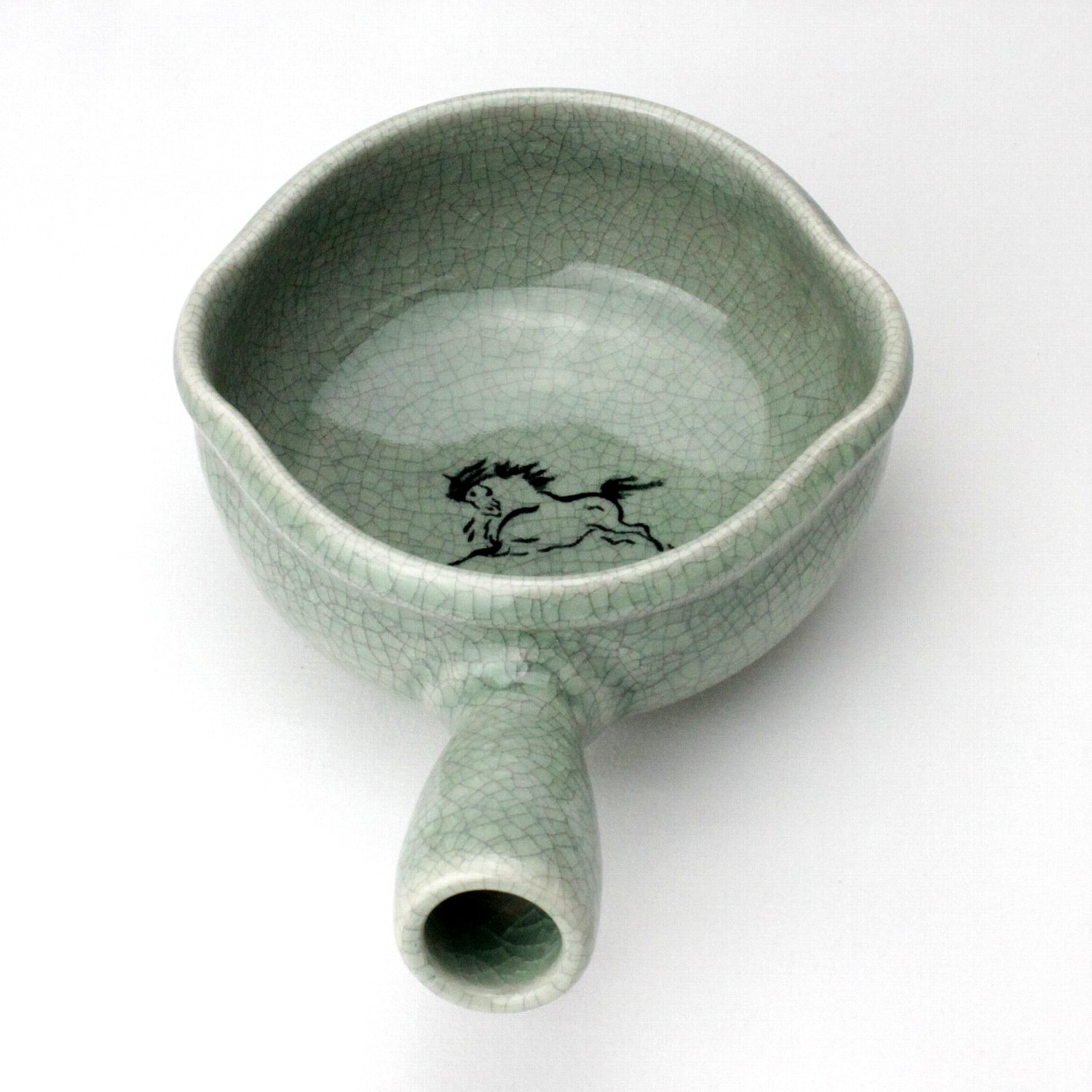 This product is a traditional glazed natto stirring bowl, a typical product of the pottery known as Soma Koma-yaki or Soma-yaki.