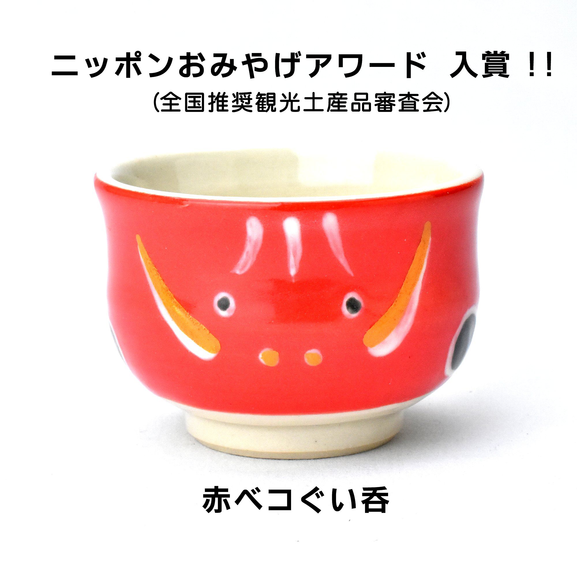 会津地方の郷土民芸品の赤ベコのデザインを、グイ呑みにあしらいました。